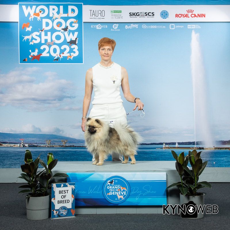 Tango Charly est un magnifique Spitz de taille moyenne ( 34 cm) . C'est généralement sa fourrure abondante et souple qui attire l'attention mais en dessous, se cache un chien très bien construit à l'ossature solide et aux muscles bien développés. Les oreilles sont bien plantées et l'expression soulignée par son masque bien dessiné. Ses qualités ont été saluées à chacune de ses sorties en exposition où il a obtenu en Jeune 5 BOB et 9 CACS et /ou CACIB sur 9 et 7 BOB en inter /ouverte. Son titre de Champion du Monde à Genève en 2023 a confirmé les excellents résultas obtenus en France. Et pour notre plus grand bonheur, en plus d'être beau , il est d'une gentillesse extrême et d'une sociabilité incroyable avec les autres chiens.